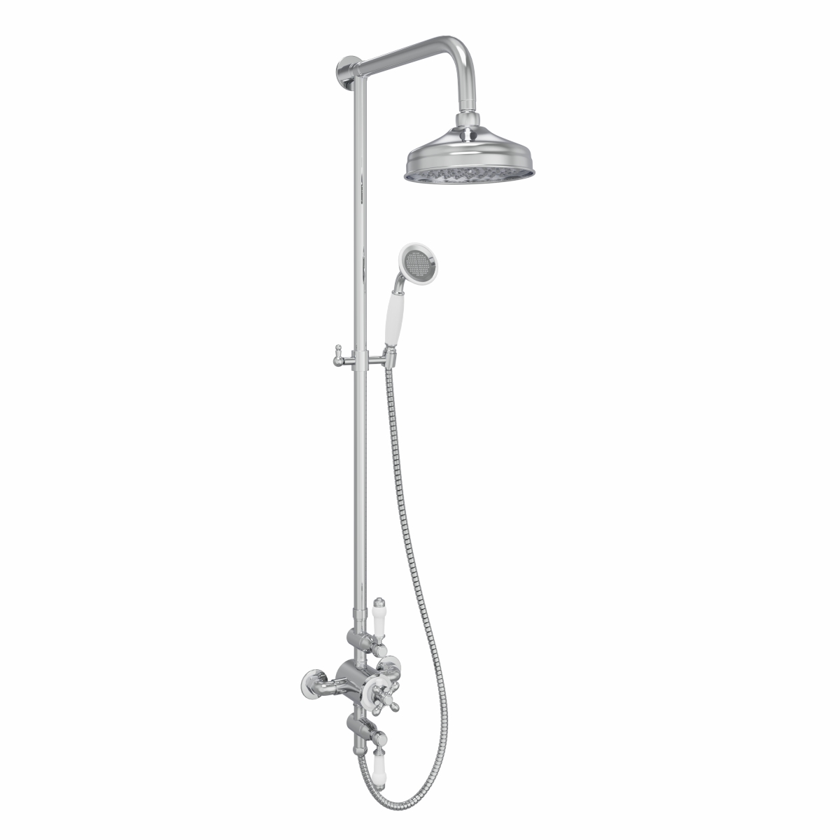 Melrose Traditional Thermostatic Exposed Shower Valve with Round Shower Head and Hand Shower Chrome and White